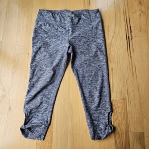 Experience ultimate comfort and style with GAIAM's gray capri pants, crafted from a soft jersey material perfect for athletic or casual wear. These capris feature a relaxed fit and elastic cuffs, making them ideal for yoga sessions or lounging at home. Embrace the blend of functionality and fashion with these versatile capris.