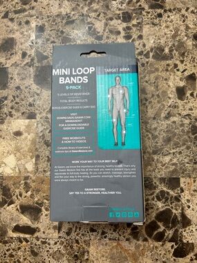 Set of five GAIAM mini loop bands. Offers varying resistance levels. Perfect for versatile workouts.