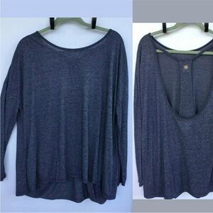 Elevate your style with this chic heather blue open-back tunic top.