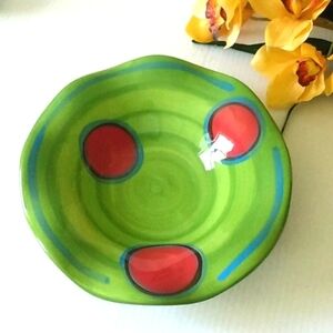 GAIL PITTMAN VINTAGE Signed Handmade Ceramic Pottery RETRO Red Dot Fluted Bowl