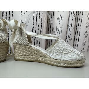 GAIMO Ankle Tie Wedge Espadrilles Sandals EU 40 US 9 Ivory Bridal Made In Spain
