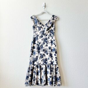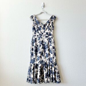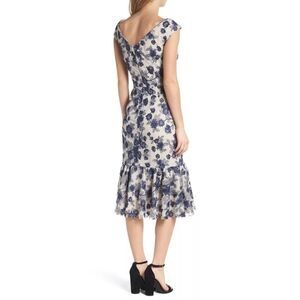 GAL MEETS GLAM COLLECTION Rosemary Floral Embroidered Midi Dress in Blue Size 2