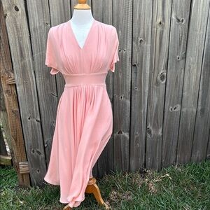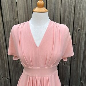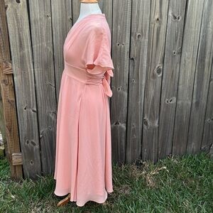 GAL MEETS GLAM Jane Tie Waist Midi Dress Coral PINK CREPE V NECK SIZE 4