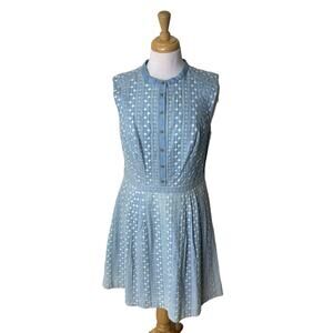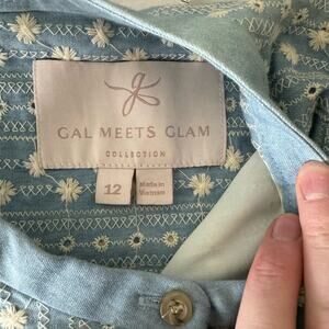GAL MEETS GLAM Quinn Embroidered Chambray Fit & Flare Dress Size 12
