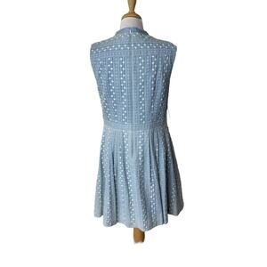 Great pre owned condition! Fabric has a natural wash and colors may vary-- this dress is no exception, there are variations in the shades of blue-- i think the skirt is a lighter blue than the top, especially around the midsection and the hem! the embroidery is more of a cream, NOT bright white.