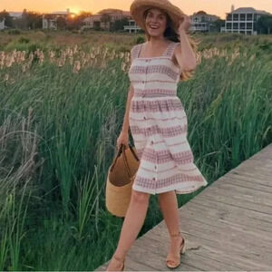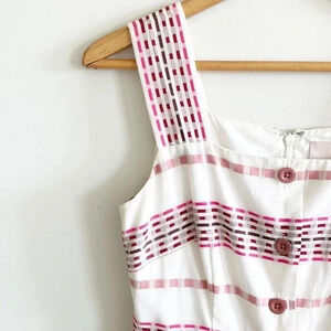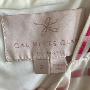 GAL MEETS GLAM cream/red button down embroidered Art Deco A-Line Dress size 2
