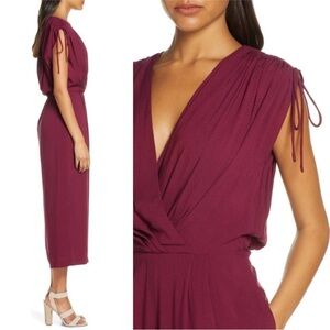 GAL MEETS GLAM luella ruched shoulder burgundy cropped jumpsuit