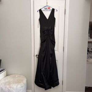 GALINA SIGNATURE Women’s Stretch Satin Ruched Mermaid Dress Black Size 2 EUC