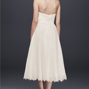 DAVID’S BRIDAL GALINA White Lace Appliquéd Tea-Length Tulle Wedding Dress WG3858