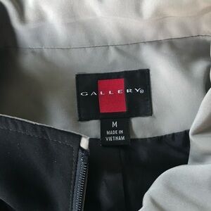 GALLERY Black & Taupe Trench Coat Raincoat detach Hood Size Medium 37” Length