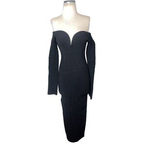GALVAN Knit Grace off-shoulder Midi Dress in Black Small New Womens Bodycon