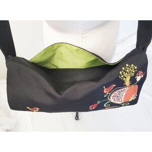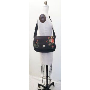 GAMA-GO Womens Messenger Bag Black Flowers and Birds Embroidery