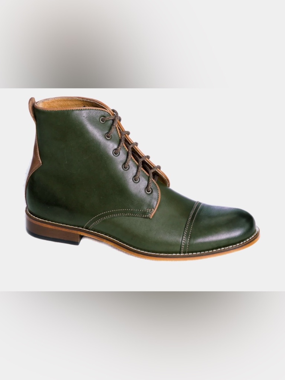 Meet the Gambler Toe Cap Boot. Our Toe Cap boot is the king of all boots. This tall lace up boot makes casual wear interesting. Customers love the details on this signature piece – the stitching across the toe, thick cotton blend laces and durable body makes our Toe Cap boot the essential piece of footwear missing from your closet. Featured here in Olive Green.