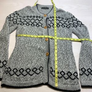 GAMBOA Peruvian Alpaca Button Up Cardigan Sweater Black + Gray Size M