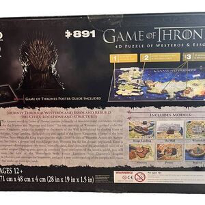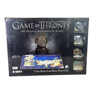 Immerse yourself in the captivating world of Westeros and Essos with this 4D puzzle featuring a detailed map of the Seven Kingdoms. With 891 pieces, this puzzle is perfect for fans of the Game of Thrones series who are 12 years old and up. The puzzle includes mini city models and is multi-colored, making it a great addition to any collection.