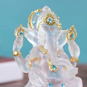 CLEAR GLAZE CRYSTAL GANESH STATUE