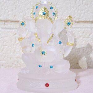 GANESH CLEAR GLAZE CRYSTAL STATUE-Bejeweled Resin Stone-4.5 in Figurine-Success