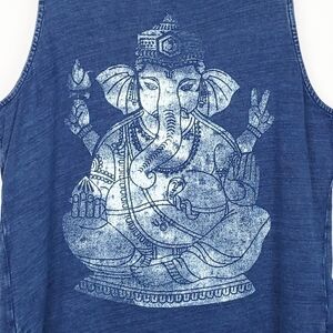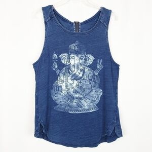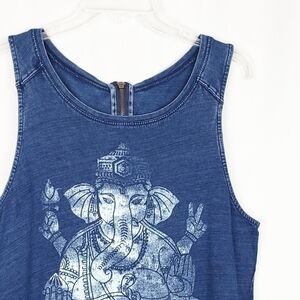 Cotton tank with unique Buddhist Ganesha elephant graphic. Pretty shade of blue, almost denim look to it. Gold zipper detail on back, fully functioning.