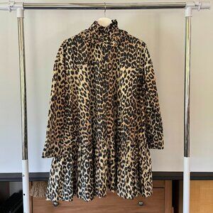 GANNI Animal Print Organic Cotton Poplin Dress. Size S/M