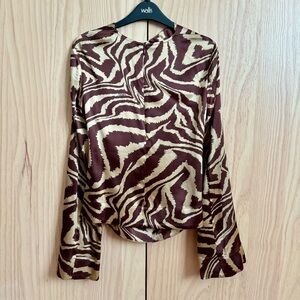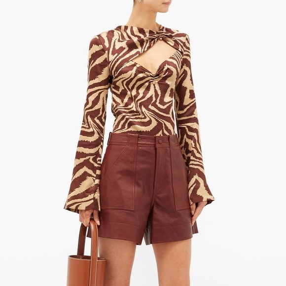 This tiger-print satin blouse debuted on the SS20 runway which celebrated Ganni’s ten year anniversary. It’s crafted with a cut-out bodice that's adorned with beads at the gathered, sweetheart neckline and finished alongside fluted cuffs.