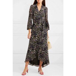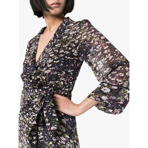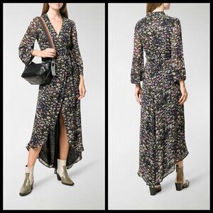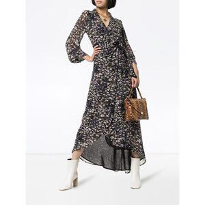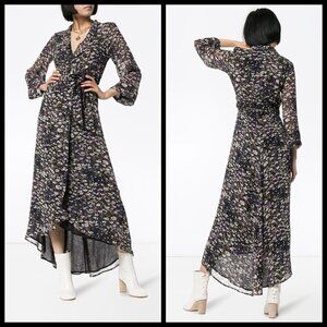 💕GANNI💕 Asymmetrical Floral Print Georgette Wrap Dress 100% Viscose ~ 34 EU