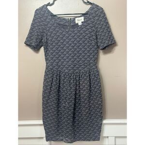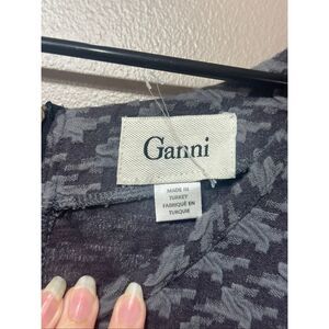 GANNI Athena Scoopneck Textured Grey Motif Short Sleeve Mini Dress Women's XS