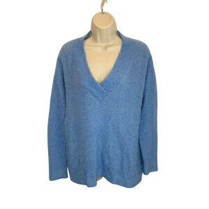 GANNI Azure Blue Soft Wool Knit Pullover V-Neck Sweater - Size S