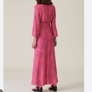 GANNI Barra Floral Printed Crepe Wrap Dress Sz 36 Hot Pink with Black Floral