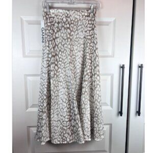 GANNI Beige White Leopard Print Satin Midi Skirt Metallic Sheen A-Line Size US 4