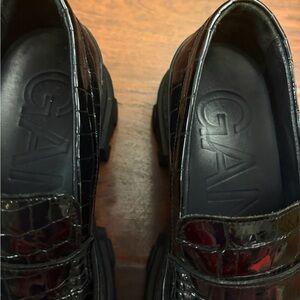 GANNI Belly Croc Chunky Platform Black Patent Leather Loafers Size 9