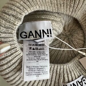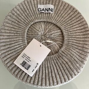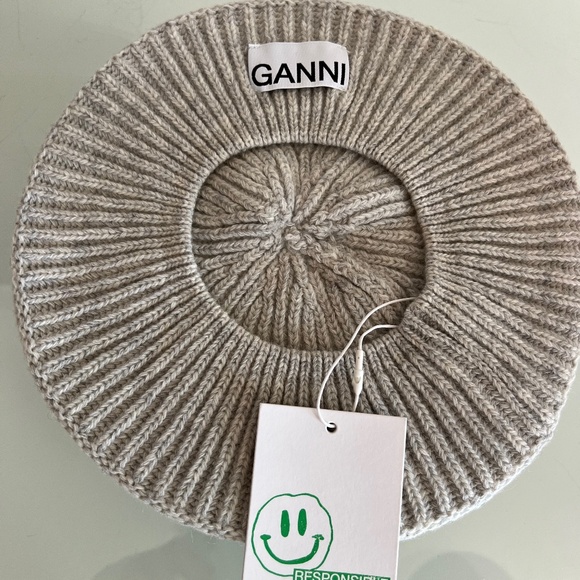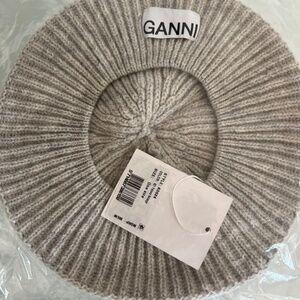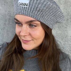 Classic knit beret hat in recycled wool blend, finished with an exposed GANNI logo tag.