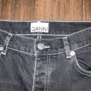 GANNI Black Button Fly Inner Ankle Splits Straight Leg Jean Size 30