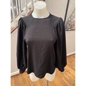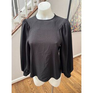 GANNI Black Crepe Clark Bell Sleeve Blouse Size 32 XS