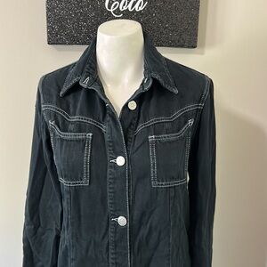 GANNI Black Denim Western Shirt Dress Long Sleeve Button Up Nashville Sz 4