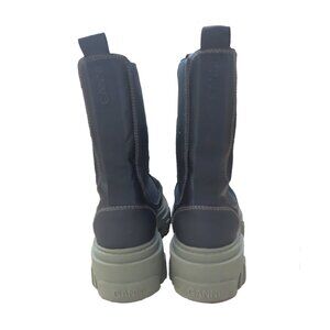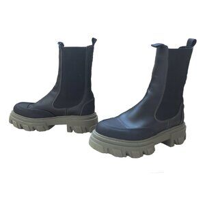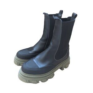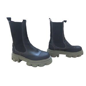 GANNI Black Leather CHELSEA Green Lugsole Platform Ankle Mid Calf Boots 38