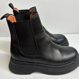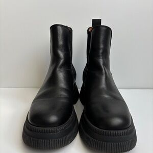 GANNI Black Leather Chelsea Boots. Platform Creeper Style. Size 10. 40.