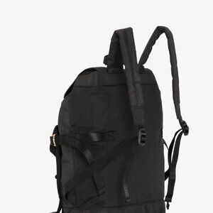 This Black Tech Backpack is made from certified recycled polyester. The backpack features adjustable and padded shoulder straps, a top handle, front buckle fastenings, front pockets, a foldover top and a GANNI logo.