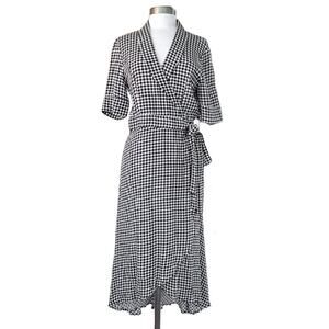 GANNI Black & White Gingham Check Midi Wrap Dress Size 40 (8 US)