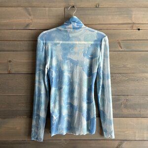 GANNI | Blue Watercolor Printed Mesh Long Sleeve Turtleneck Top Size US6, DK36