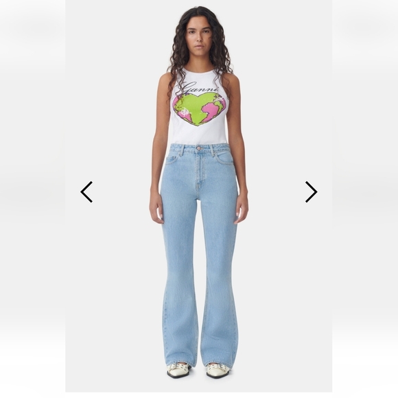 GANNI Denim Betzy High Rise Bootcut Jeans Organic Cotton Blue Stone 26W/32L 90s