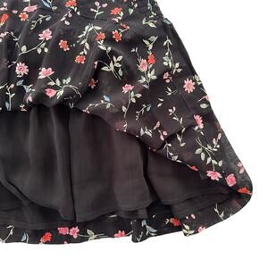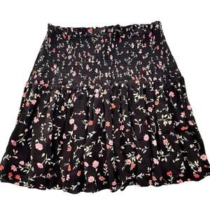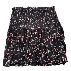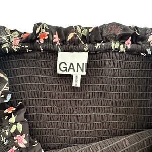 GANNI Elm Shirred Floral Black Georgette Mini Skirt Size 40 US 10 Smocked Waist