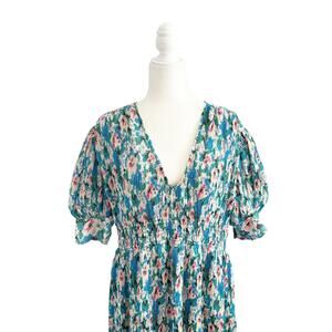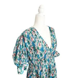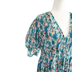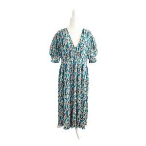 GANNI Floral Azure Midi Dress Large Blue NEW