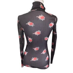 GANNI Floral Black Mesh Long Sleeve Top Size 34/XS