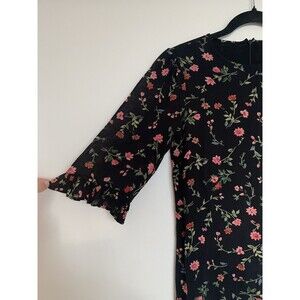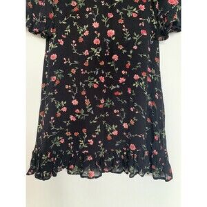 GANNI Floral Crepe Mini Dress Ruffle Accents Flowy Shift 34 US 2 XS