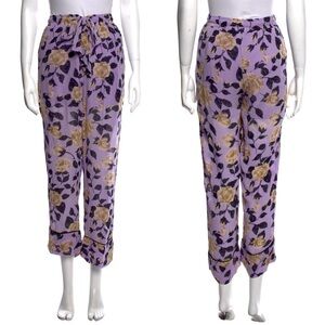 GANNI Floral Georgette High Rise Drawstring Waist Ankle Crop Wide Leg Pants 2