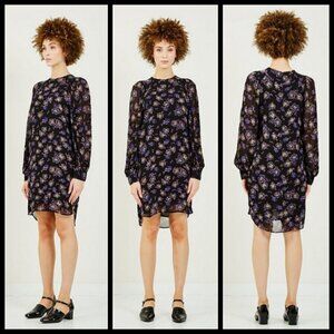 💕GANNI💕 Floral Georgette Mini Shift Dress ~ Black Floral Print 38 EU
