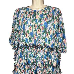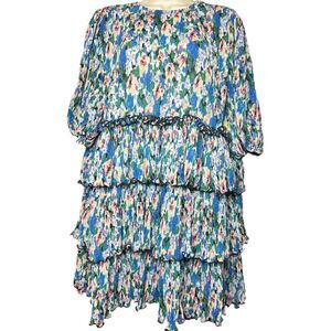 GANNI Floral Layered Plissé Georgette Dress In Floral Size 44