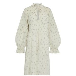 GANNI Floral Pleated Cream and Lilac Georgette Midi Dress