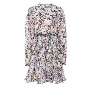 GANNI Floral Plisse Pleated Georgette Mini Dress.