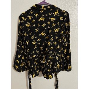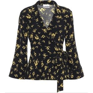 GANNI Floral Print Crepe Wrap Blouse in Black